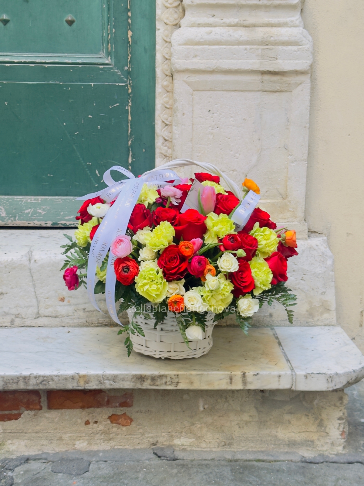 Le tipologie di fiori e la tipologia di cestino variano a secondo delle scelte dei nostri fioristi, della stagione e della disponibilità. Utilizziamo solo fiori di prima qualità