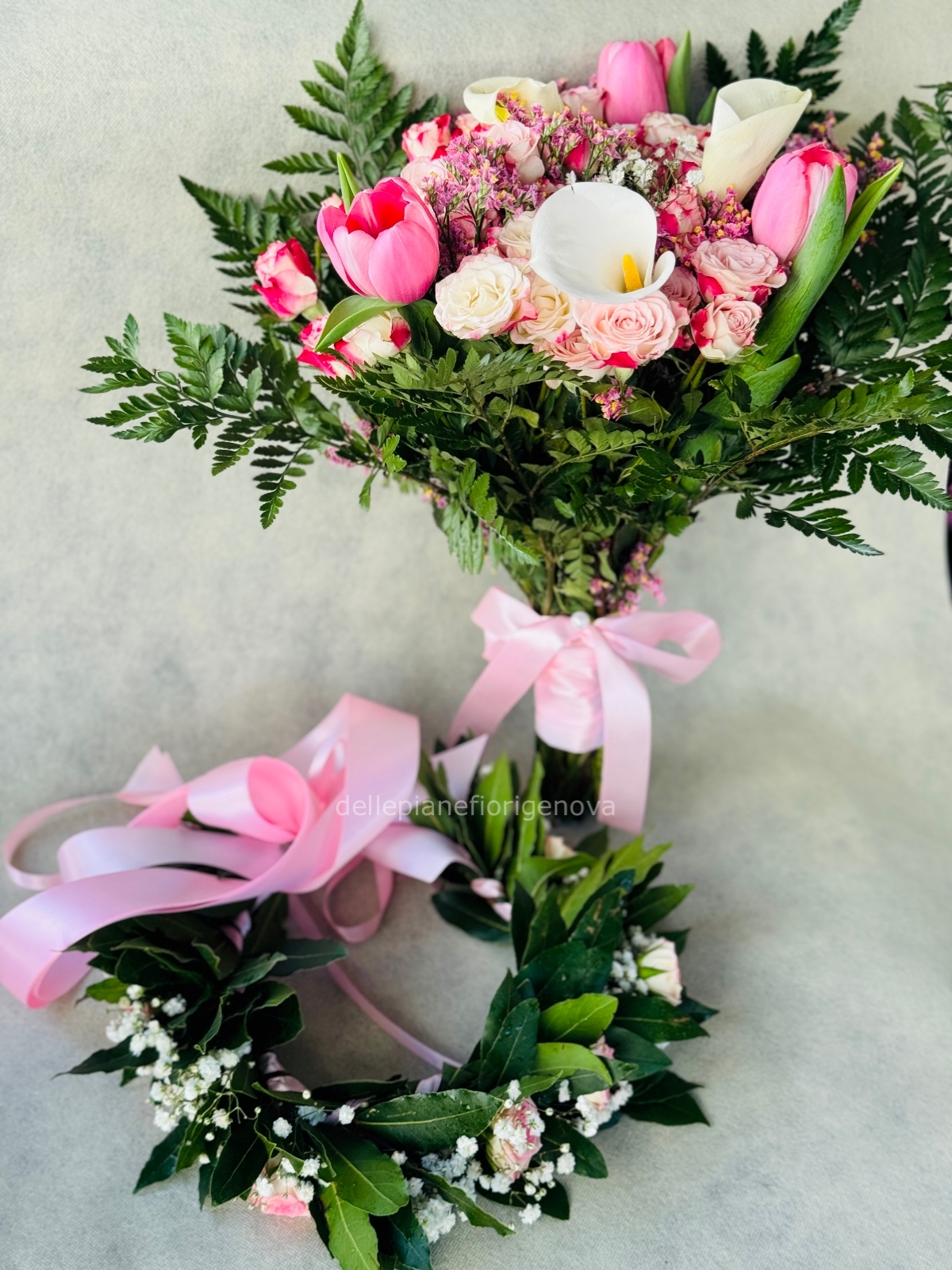 ✔️ Bouquet e coroncina coordinati